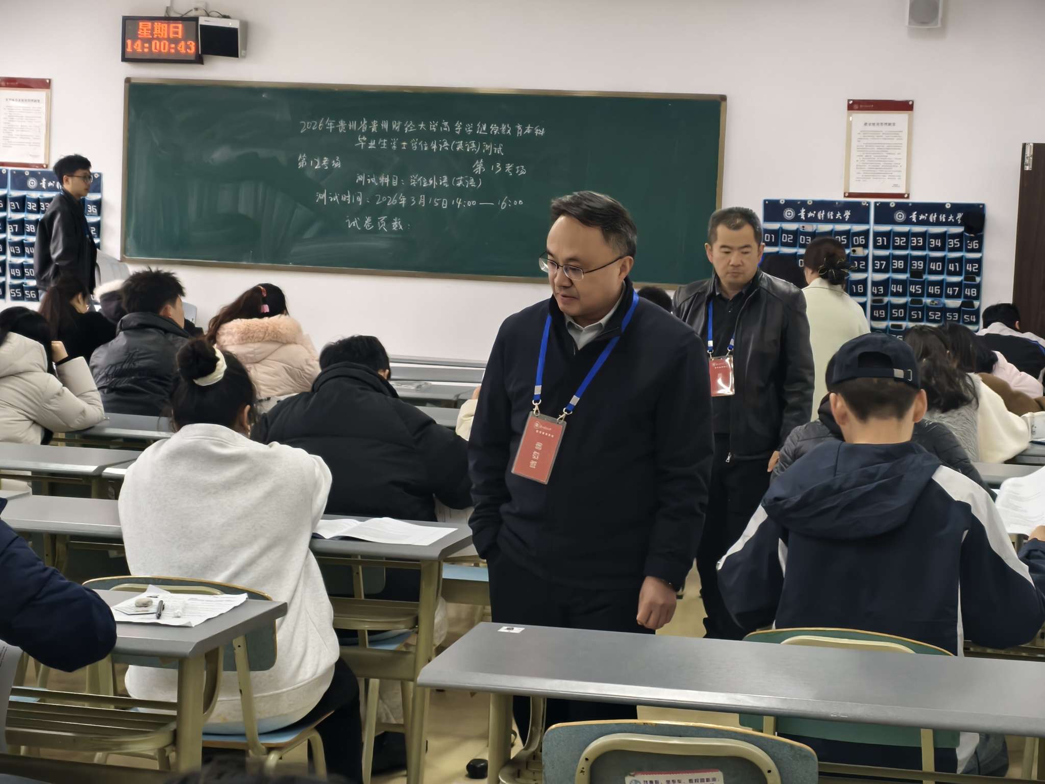 本网讯:(继续教育学院 屠玉帅 报道|摄影 李静)3月15日下午,2026年贵州高等学历继续教育本科毕业生学位外语(英语)测试联盟贵州财经大学考点测试在我校西区博学楼顺利举行,本次考试共设13个考场,近400名成人考生参加考试。